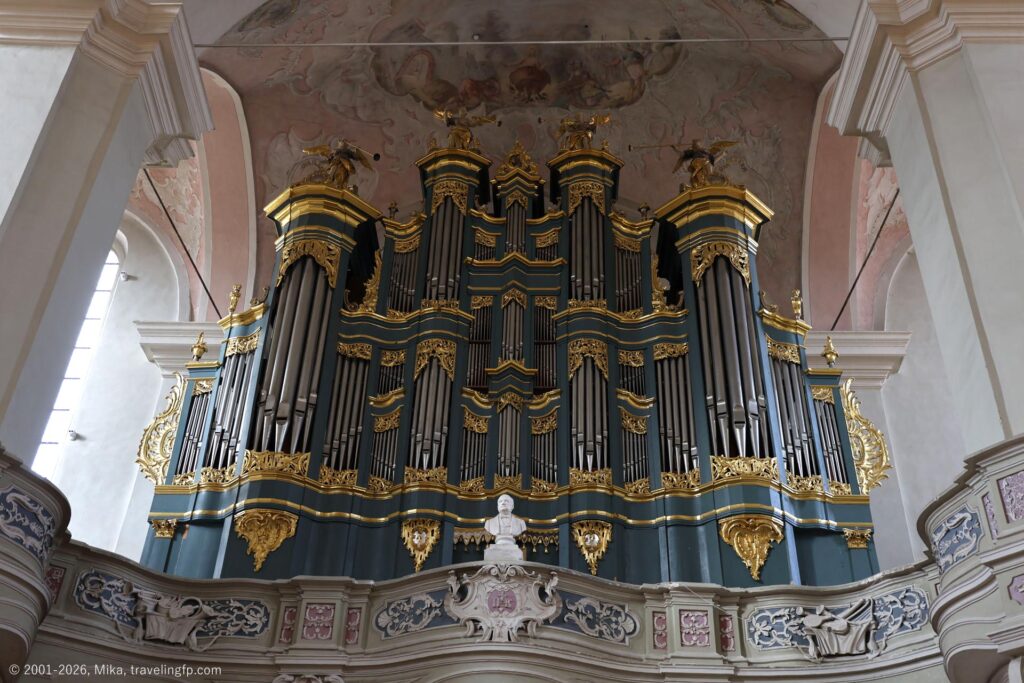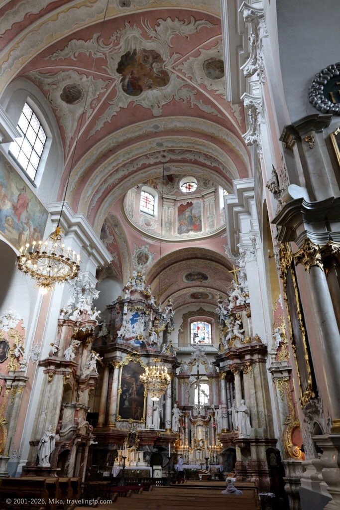 こちらが私の選んだヴィリニュスのキングオブバロック、ドミニカの聖霊教会。ピンク×ブルー×金!ドイツで見たロココ様式の世界遺産、ヴィースの巡礼教会を思い出しました。