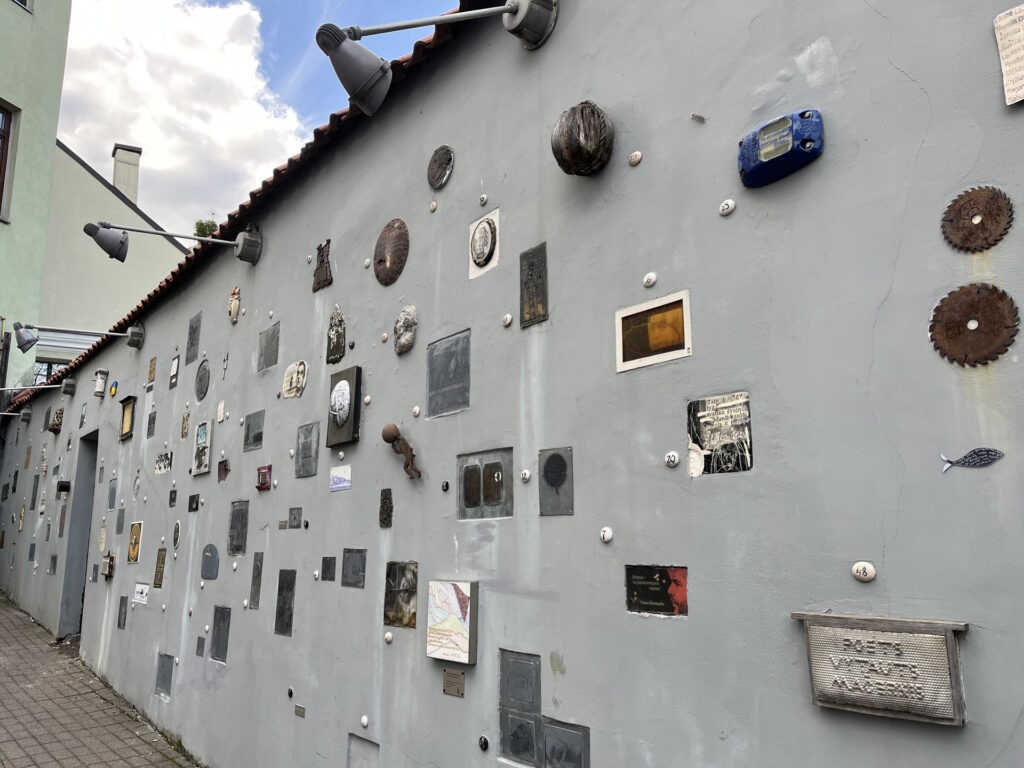ヴィリニュス大学の東側へ、ゲディミナス城近くと同じヴィルネ川の流れが続いていて、ここを渡るとウジュピス共和国。本当の国ではないけど、このエリアのアーティストたちが独立を宣言し、独自の憲法も持っているそう。確かにあちこちにアートが。面白いお土産もの屋さんもあるので、散歩にオススメです。